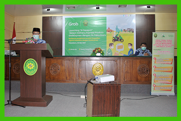 Pengadilan Agama Pekanbaru LAUNCHING SI DEXSPRO (Sistem Delivery Express Product) acara berlangsung hari Kamis, tanggal 20 Mei 2021 M bersamaan 8 Syawal 1442 H, Pukul 08.15 WIB. Acara diadakan di ruang Sidang satu Muadz bin Jabal Pengadilan Agama (PA) Pekanbaru yang dihadiri oleh Wakil Ketua Pengadilan Tinggi Agama (PTA) Pekanbaru Bapak Drs. M. Shaleh, M.Hum., Perwakilan dari Grab Indonesia, Ketua PA Pekanbaru Bapak Drs. Ahmad Sayuti, M.H., Wakil Ketua Bapak Drs. H. Bakti Ritonga, S.H.,M.H., Para Hakim, Panitera, Sekretaris Pejabat Struktural/Fungsional Karyawan – karyawati serta Tenaga Kontrak PA Pekanbaru, dan turut hadir beberapa orang masyarakat pencari keadilan yang diundang sebagai sosialisai SI DEXSPRO.