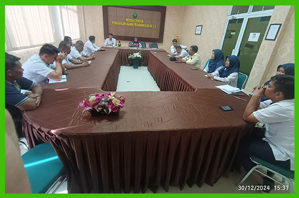 Senin, Pukul 14.00 WIB, tanggal 30 Desember 2024. Pengadilan Agama Pekanbaru mengadakan Rapat Monitoring dan Evaluasi (Monev) PPNPN (Pegawai Pemerintah Non PNS) Pengadilan Agama Pekanbaru Triwulan IV 2024 di Ruang Rapat Pengadilan Agama Pekanbaru lantai II, yang dipimpin oleh Wakil Ketua Anneka Yosihilma, S.H., M.H., dihadiri Sekretaris Pengadilan Agama Pekanbaru Zosmel Zuly, S.T., M.Sc., M.H. dan kasubbag Umum dan Keuangan Nur Syahidi, S.H.I, dan seluruh PPNPN Pengadilan Agama Pekanbaru.