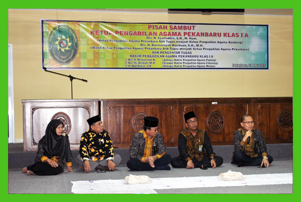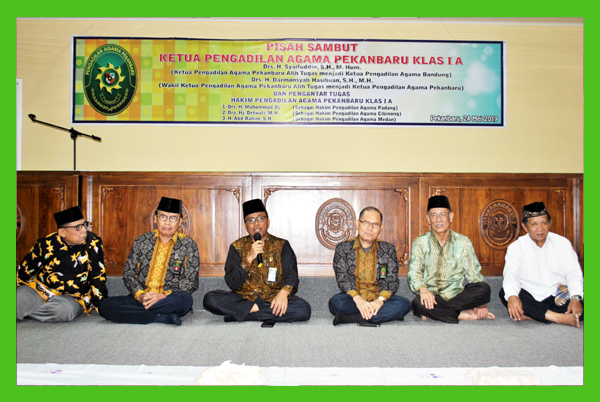 Jumat, tanggal, 24 Mei 2019 bersamaan tanggal 19 Ramadhan 1440 H diruang Muadz bin Jabal dilaksanakan acara pisah sambut Ketua Pengadilan Agama Pekanbaru Drs. H. Syaifuddin, SH., M.Hum menjadi Ketua Pengadilan Agama Bandung dengan Wakil Ketua Pengadilan Agama Pekanbaru Drs. H. Darmansyah Hasibuan, SH.,MH menjadi Ketua Pengadilan Agama Pekanbaru serta pengantar tugas Hakim Pengadilan Agama Pekanbaru diantaranya: