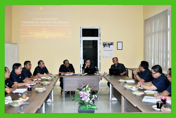 Pengadilan Agama Pekanbaru laksanakan kegiatan rutin setiap Selasasa dalam 2 (dua) minggu sekali, yakni Coffe Morning. Adapun topik pembahasan dalam Coffe Morning hari selasa tanggal, 30 Juli 2019 M bersamaan dengan 26 Zulqaidah 1440 H adalah mediasi.