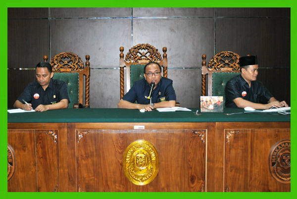 Sebelum rapat dilanjutkan Ketua menegaskan pada seluruh yang hadir bahwa untuk rapat selanjutnya tidak ada lagi yang terlambat masuk ke ruang rapat, setelah rapat diumumkan, jika masih ada yang terlambat akan dicatat dan diberi teguran. Selanjutnya pengarahan Ketua tentang Evaluasi Tupoksi kinerja diantaranya: